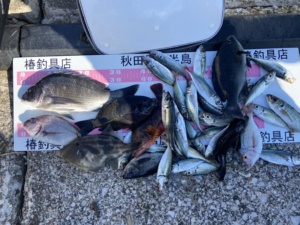 釣果:クロダイ、メジナ。アジ大漁、ウマヅラハギ、マダイ大バラシ1、クロダイ(?)大バラシ2。