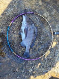 朝一の子島は、結構波かさがあったため、しばらく側で様子を見ておりましたが、波も落ち着いて来たので無事釣りは続けられました。最も人気のポイントではありますが、アジの猛攻が強く苦戦となりました。