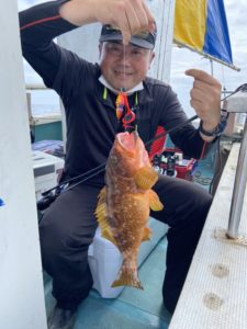 釣果:キジハタ、ウッカリカサゴ、ワラサ、ヒラメ、マダイ、クロソイ、マフグ、エソ。他、アイナメ、カレイ。