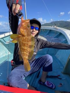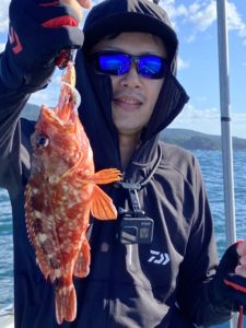 船酔い、辛いですよね…。それでもめげずにいつもチャレンジして下さり、ありがとうございます!最後の最後に起き上がり渾身のデカウッカリカサゴ釣り上げたのは、お見事でしたね!👏