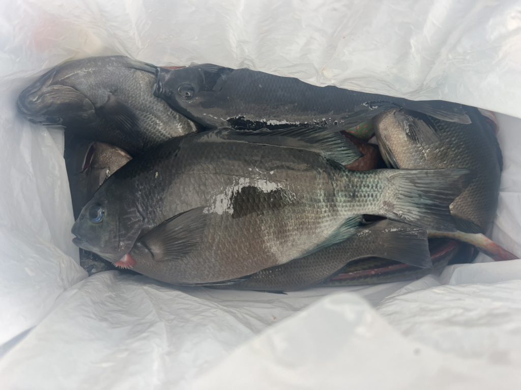 餌取り子マダイ、ベラ(上も下も)、シマダイ、ウマヅラハギ。