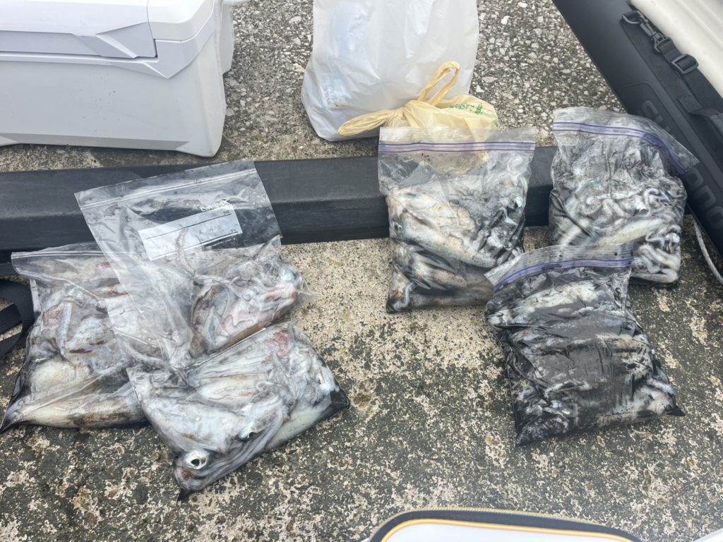 常にポツポツとイカ釣れてた為、フカセやる暇なく結局はオキアミ使ってなかったそうです(;´∀`)