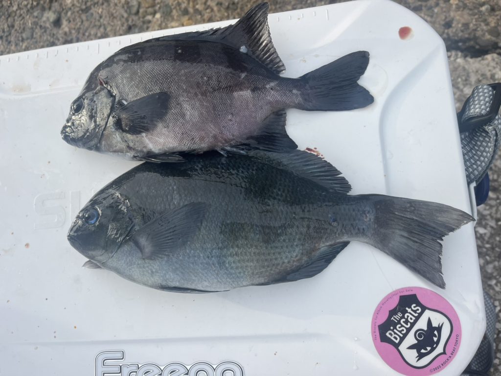 目視で30オーバーのメジナを観測。
