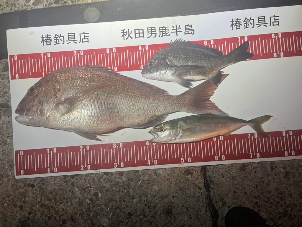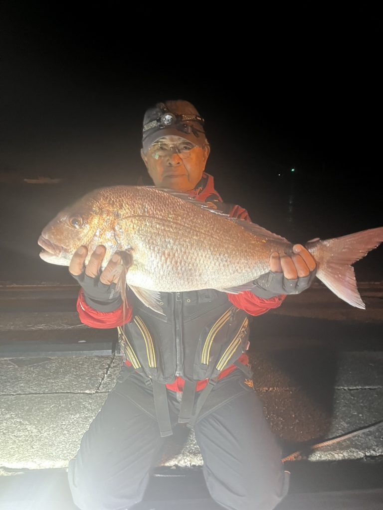 なんとなんとこの時期に三つ繰りで65cmのマダイが釣れるとは、びっくりです!!