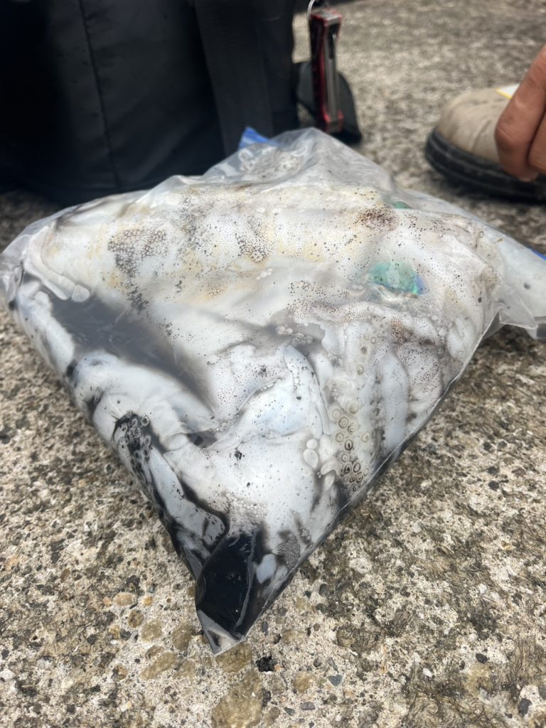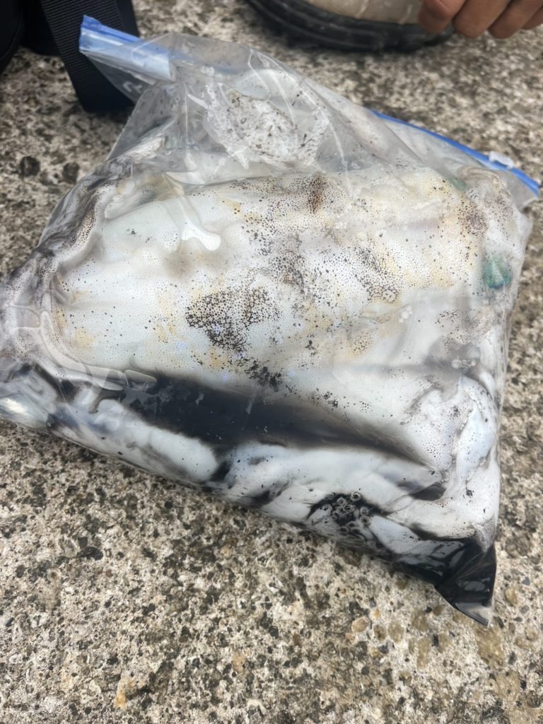 写真のジップロックは、前日にどこかのお船でTRと夜間に丘っぱりから釣った分も含まれていますが、とどぐりで釣れたのは計6杯。最大24.5cm。終わり時期の渡船エギングと考えれば満足の結果☺️