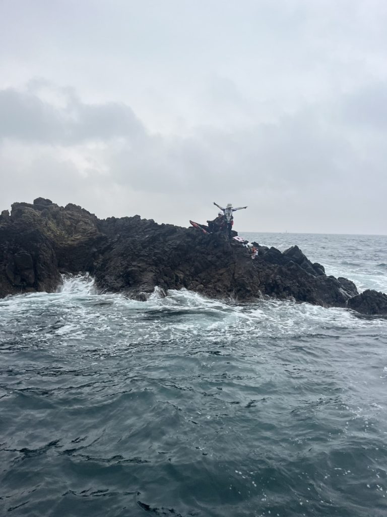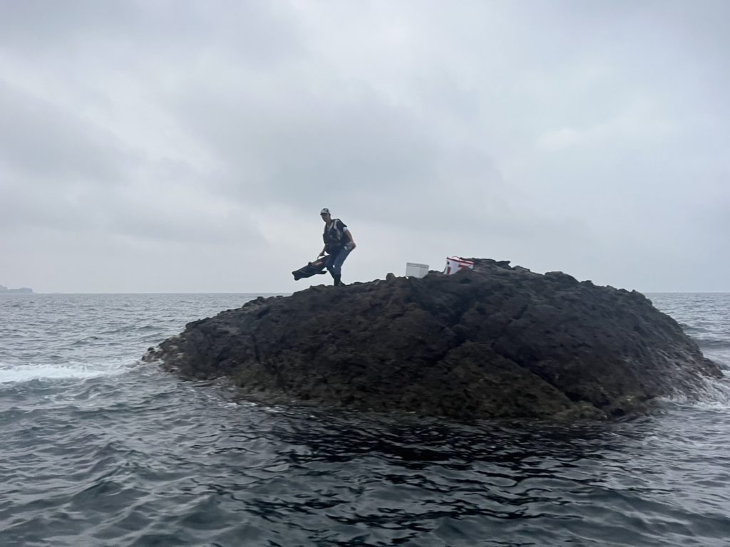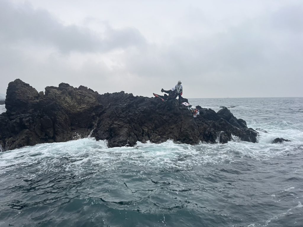 潮速過ぎ、うねり飛沫キツ過ぎて釣りにならず・・・、金崎Bへ移動。