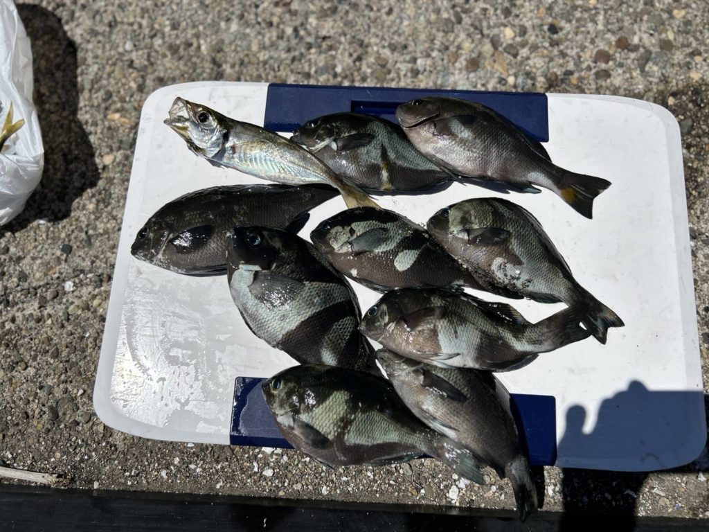 木っ端メジナ大漁、チャリコ数枚。