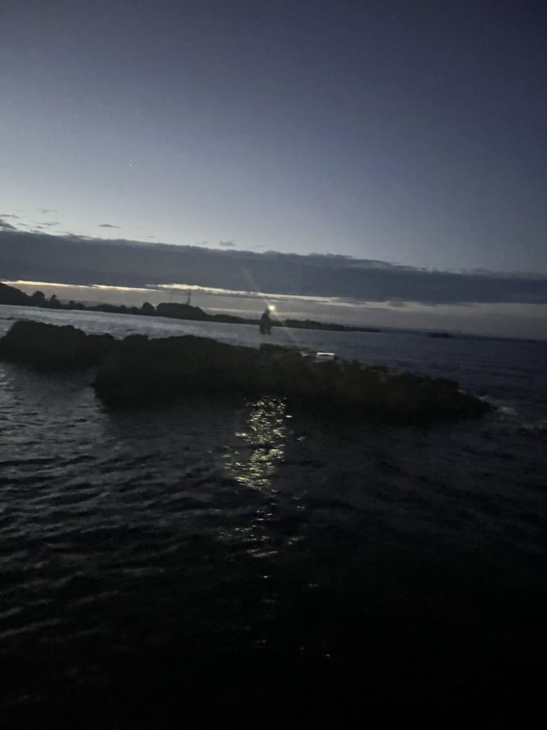 ひとまずうねりが落ちるのに賭けて3時くらいまで待ってから出ましたが、中々うねり落ちず…