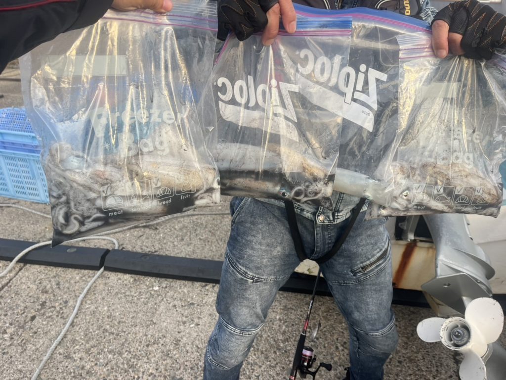 3名様のうち2名様はイカ狙いのエギング。5-6で計11杯。