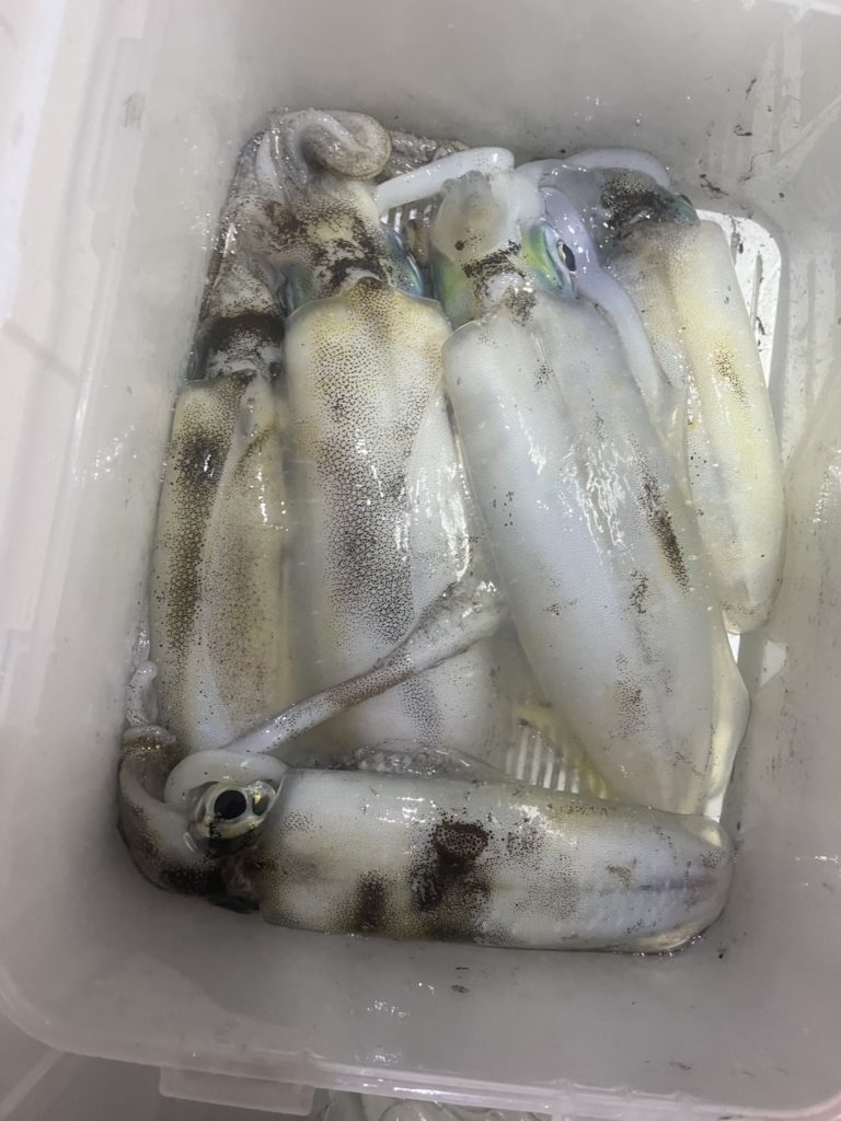1時頃には餌無くなりエギングに切り替えた結果、わずか3時間で5杯。型良し。バラシやゲソもあり、釣れていたら7杯でした。゚(゚´Д`゚)゚。