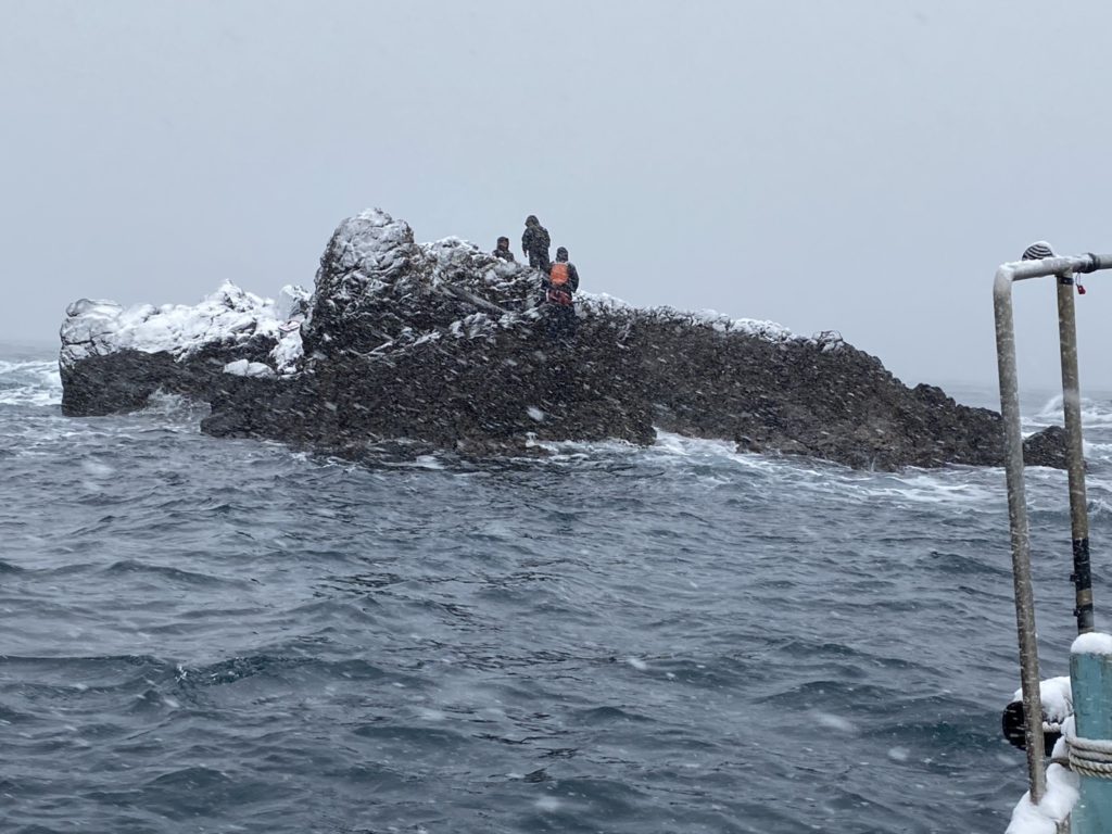 目的の地磯も大荒れで厳しいそうで、更に1名様追加の計3名様となって、やっぱり渡りたいとの事٩( ‘ω’ )و