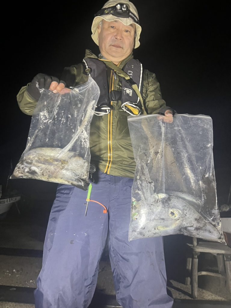 最初はどうなるかと思いましたが、永幸の方は途中からバタバタと釣れ始めました!しかし最近よくある「一人だけが無双している」のは本日も健在。しかも席問わずなので、船頭としては運とも食い気とも言えません・・・。とりあえずイカは居ます(;´∀`)
