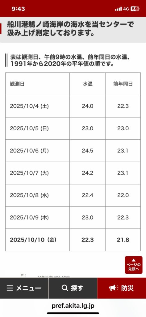 09:23 永 0-1-1-0-2 水温一気に2度下がってる模様。