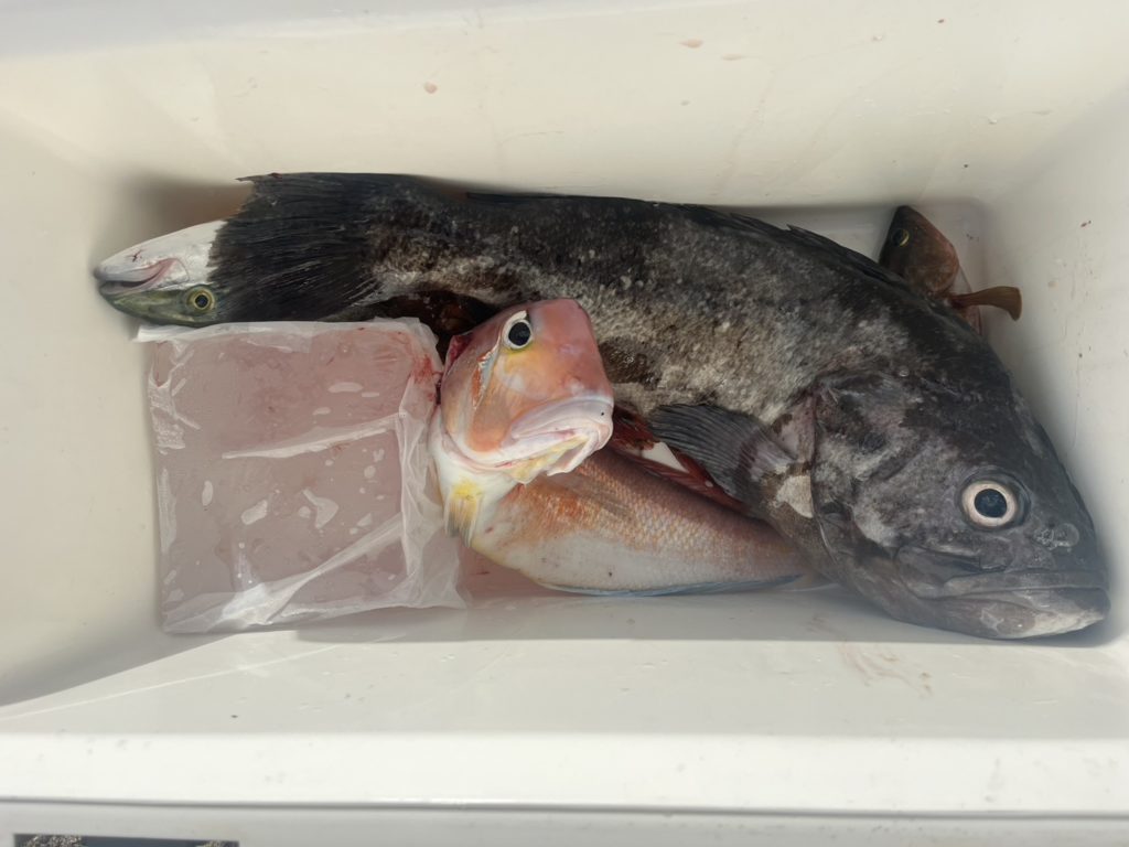 カサゴ、金魚マダイ、エソ、イナダ、デカゴジラ、マゾイ、キジハタ、メジマグロ、ウッカリカサゴ、良型アマダイ
