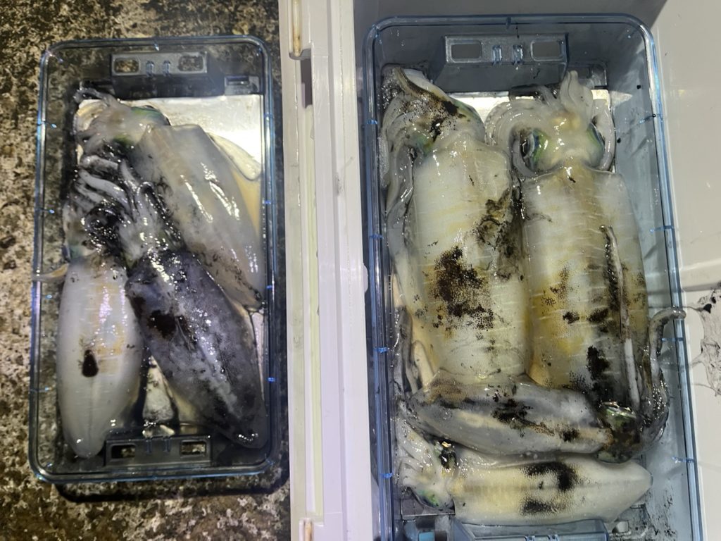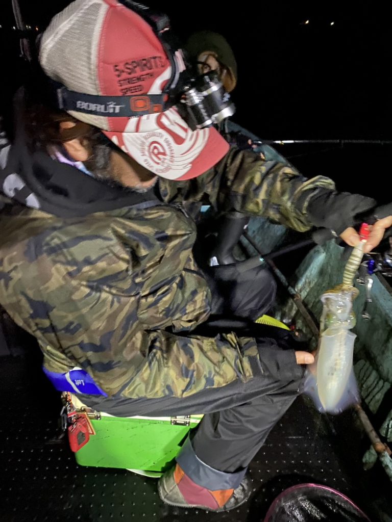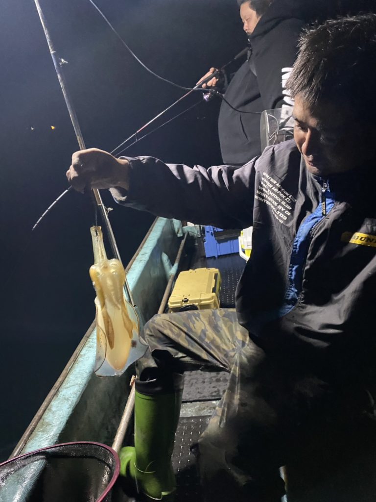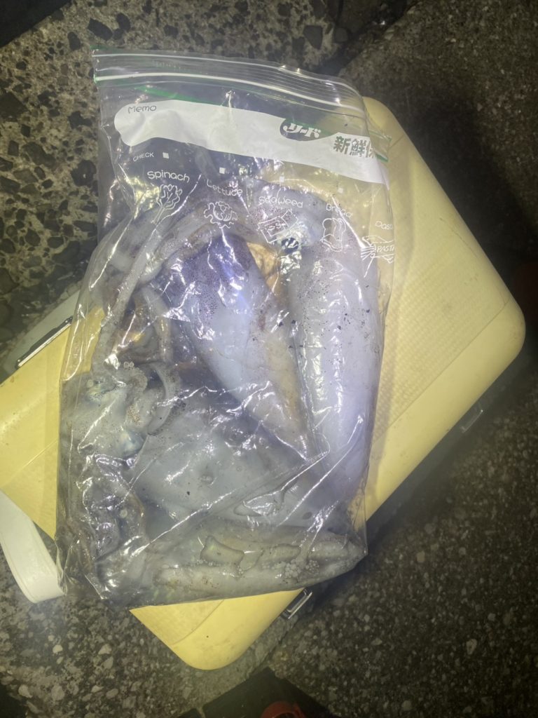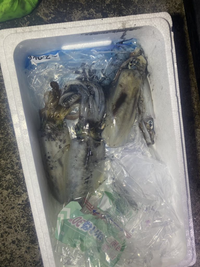 夜のみお二方でお越しの代表者様、午後も夜も釣れなかった初心者さんに、イカ全部プレゼントされました( ゚Д゚)!?