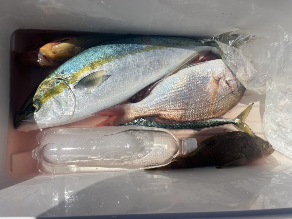 アジ、サバ、カタクチイワシ、ベラ、マダイ、マゾイ、キジハタ、イナダ。8目達成❣