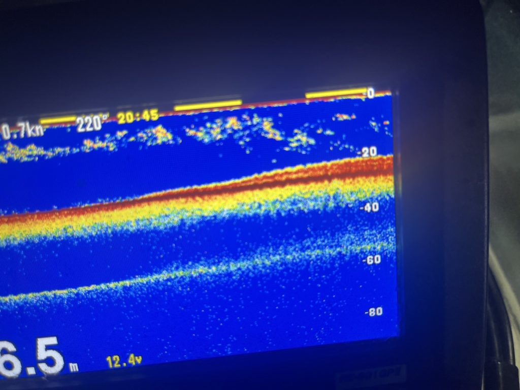 魚探反応も非常に活性悪く、後半は、写真のようなベイト反応があってもサビキにすら掛かって来ない程の食い気の無さ・・・厳しかったです(;´д`)