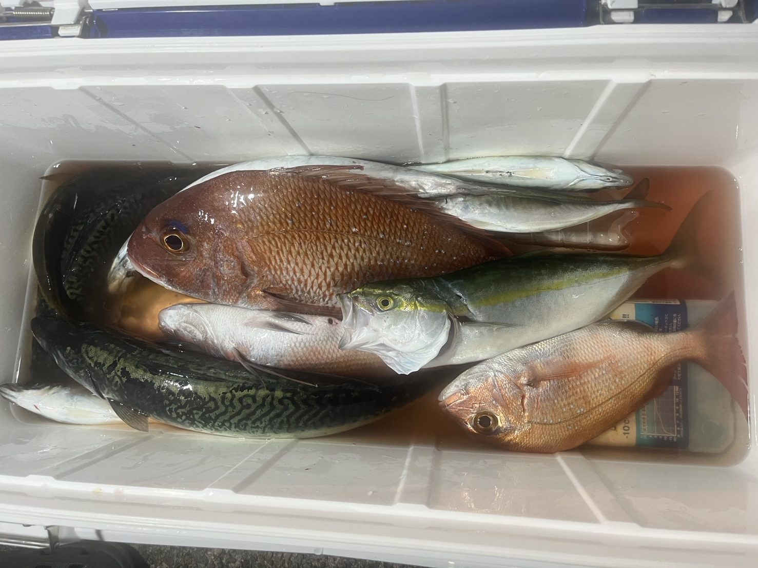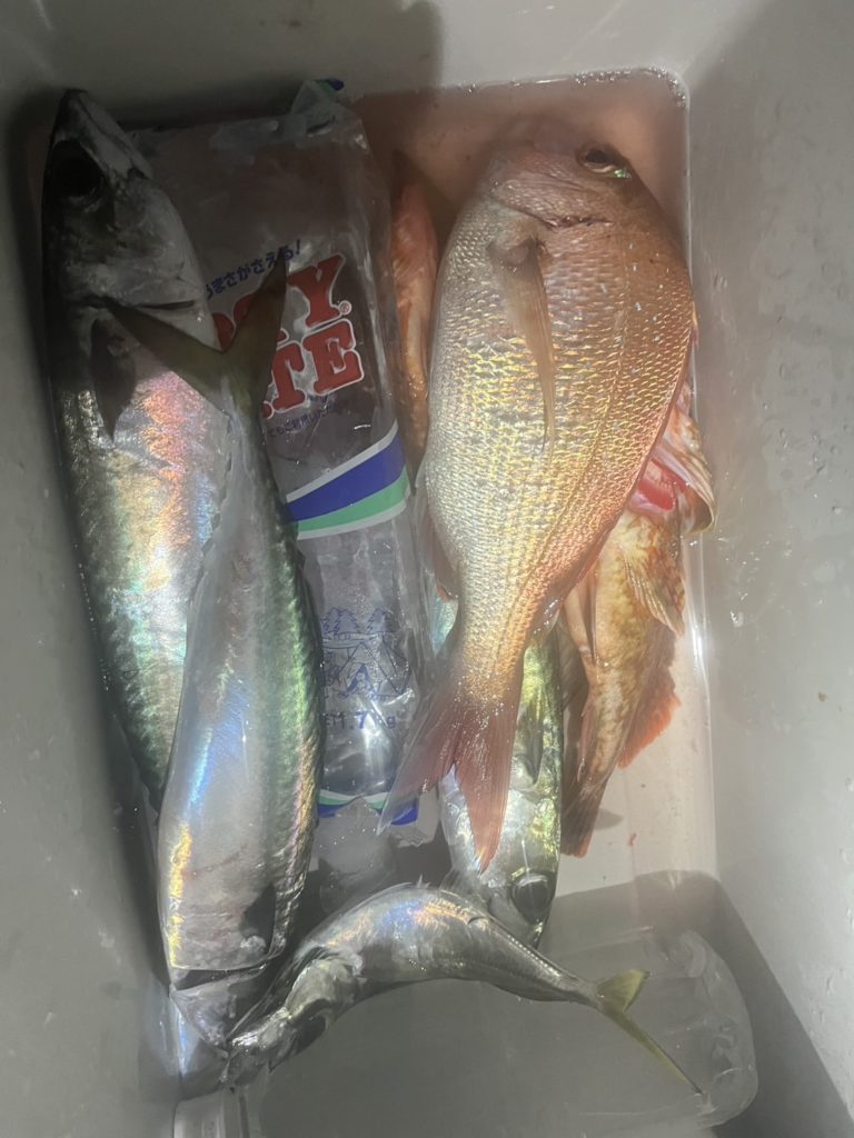 大アジ、大サバ、ワカシ、マダイ、カサゴ。5目達成❣