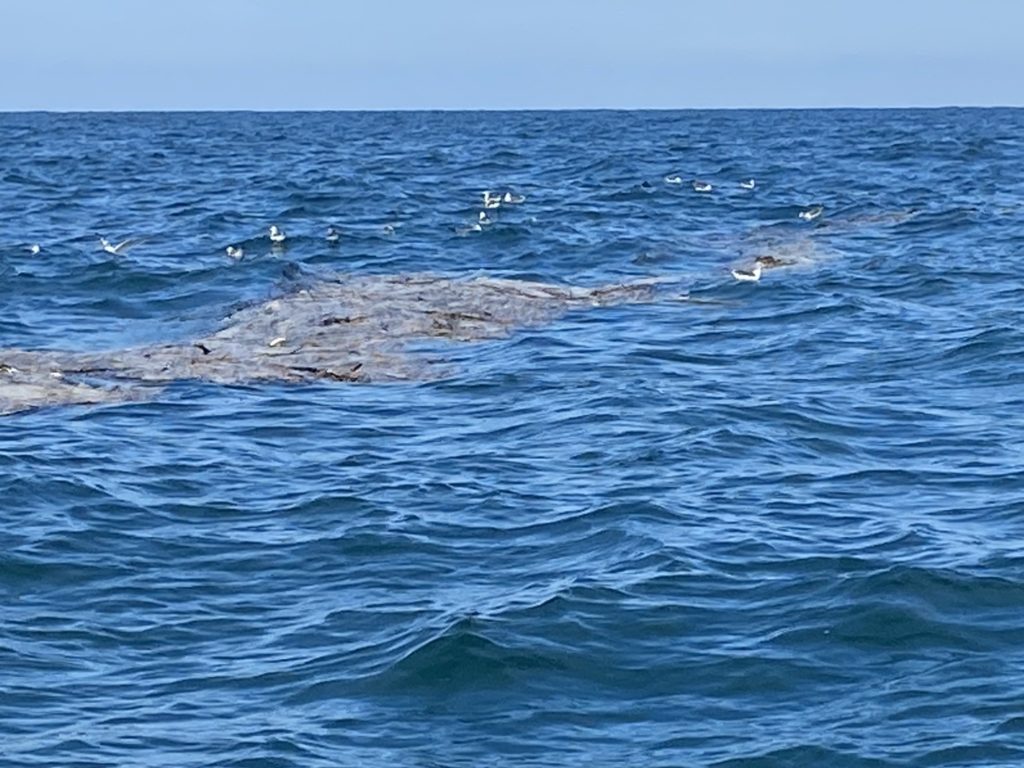 慎重に、ゆっくり目的地へ向かって、水深60mくらいのところに潮境があり、鳥の群れもいたため開始🎣
