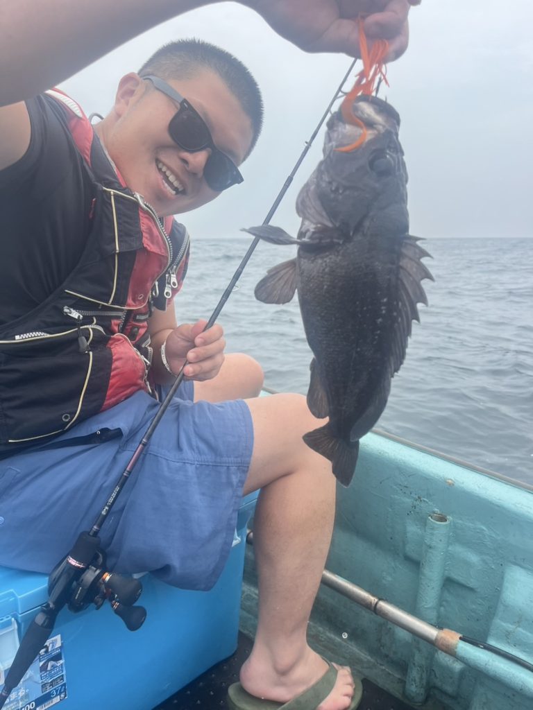 最後の最後にキジハタポイントを流して終わりましょうかーと早巻き回収してもらった所、お連れ様の糸が巻き戻ってくるどころか伸びていくではありませんか( ゚Д゚)