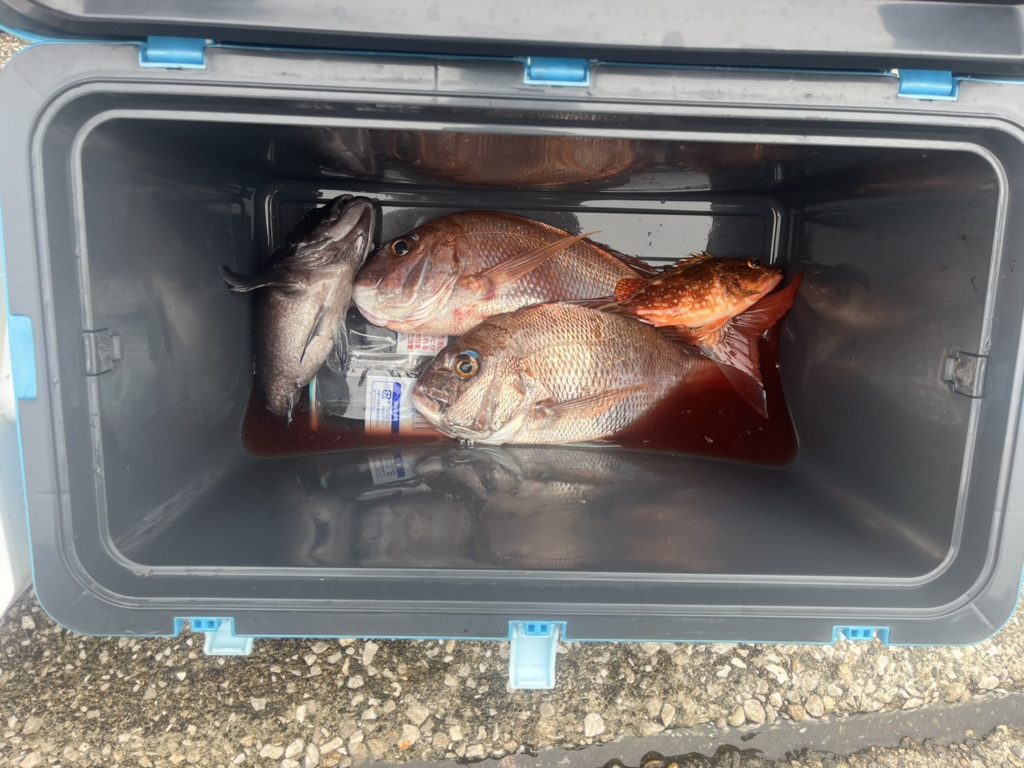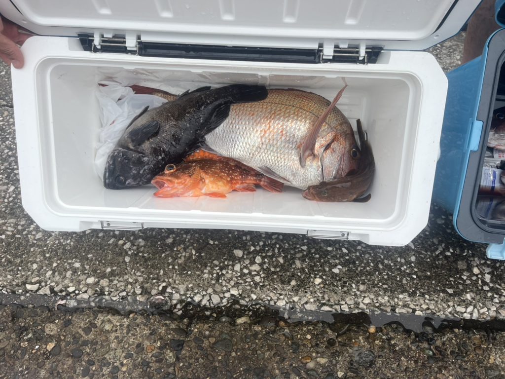 マダイ、エソ、カサゴ、マグロ(80cm即リリース)、クロソイ、キジハタ、ブリ。