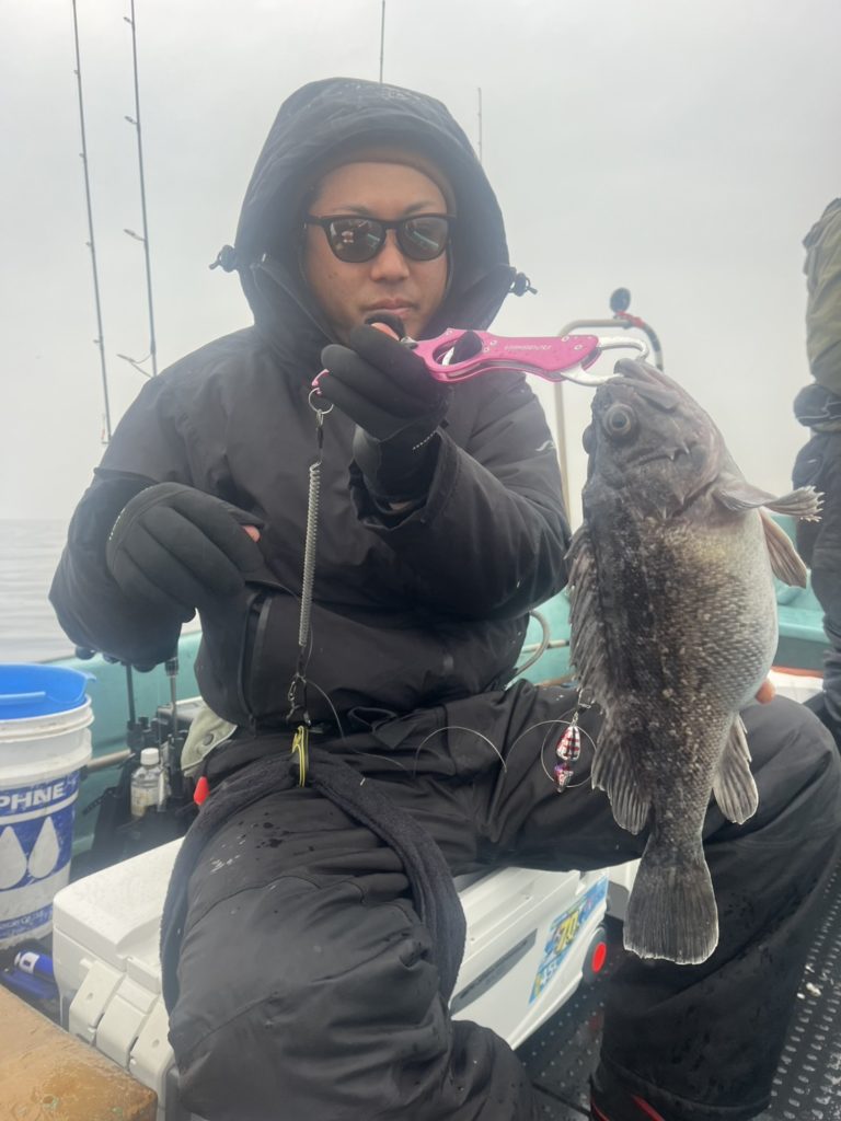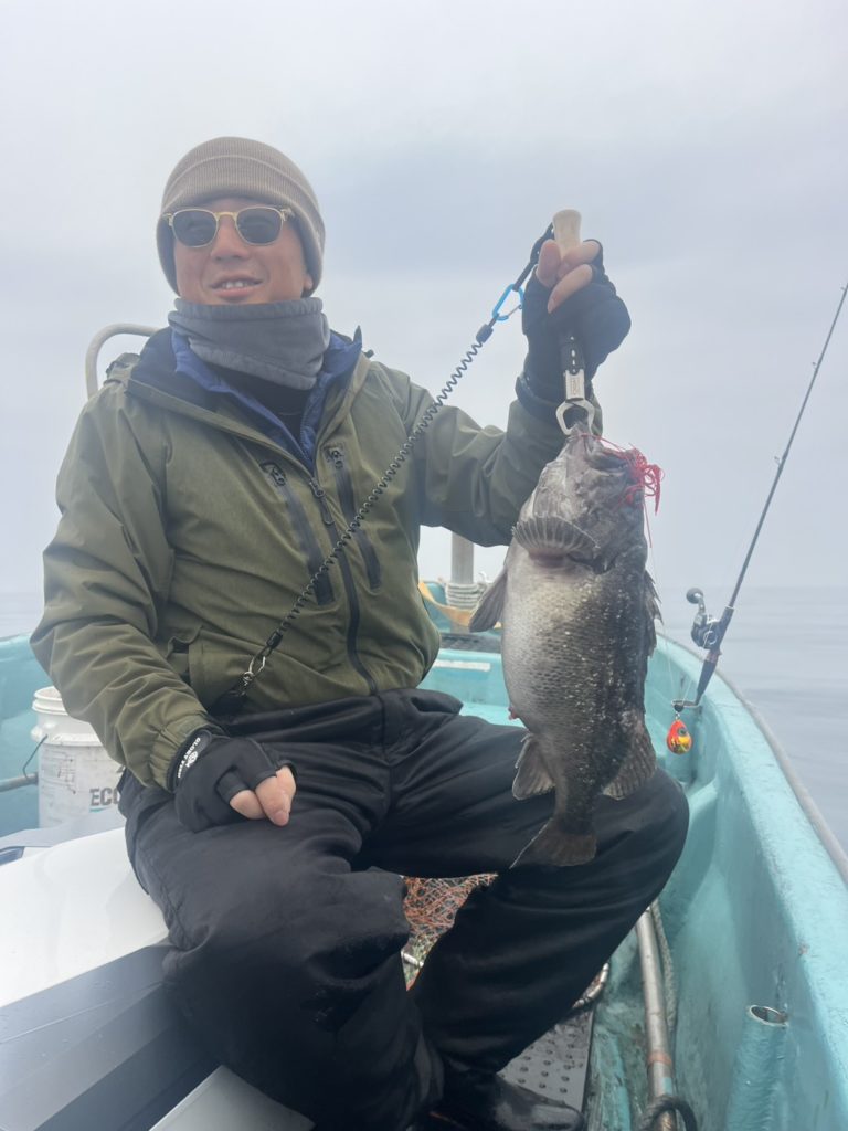 ひとまず深場からどんどん浅くしていく方針で、クロソイがポツポツと釣れ今日も調子良いと思ったら、お連れ様には大きなマダイの引きが(´゚д゚`)