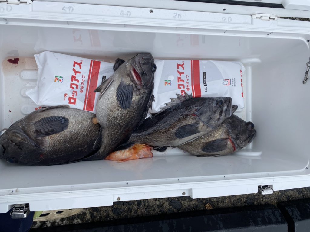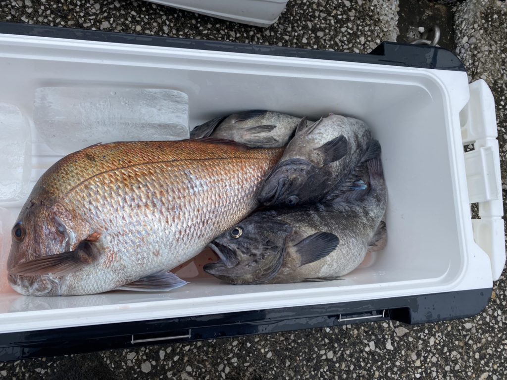 クロソイ、マダイ(67cm)、カサゴ。