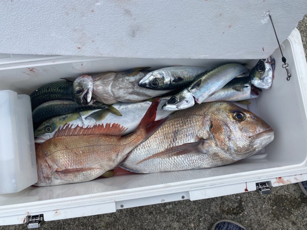 マダイ、ワラサ、サバ、アジ、ウッカリカサゴ、アイナメ。