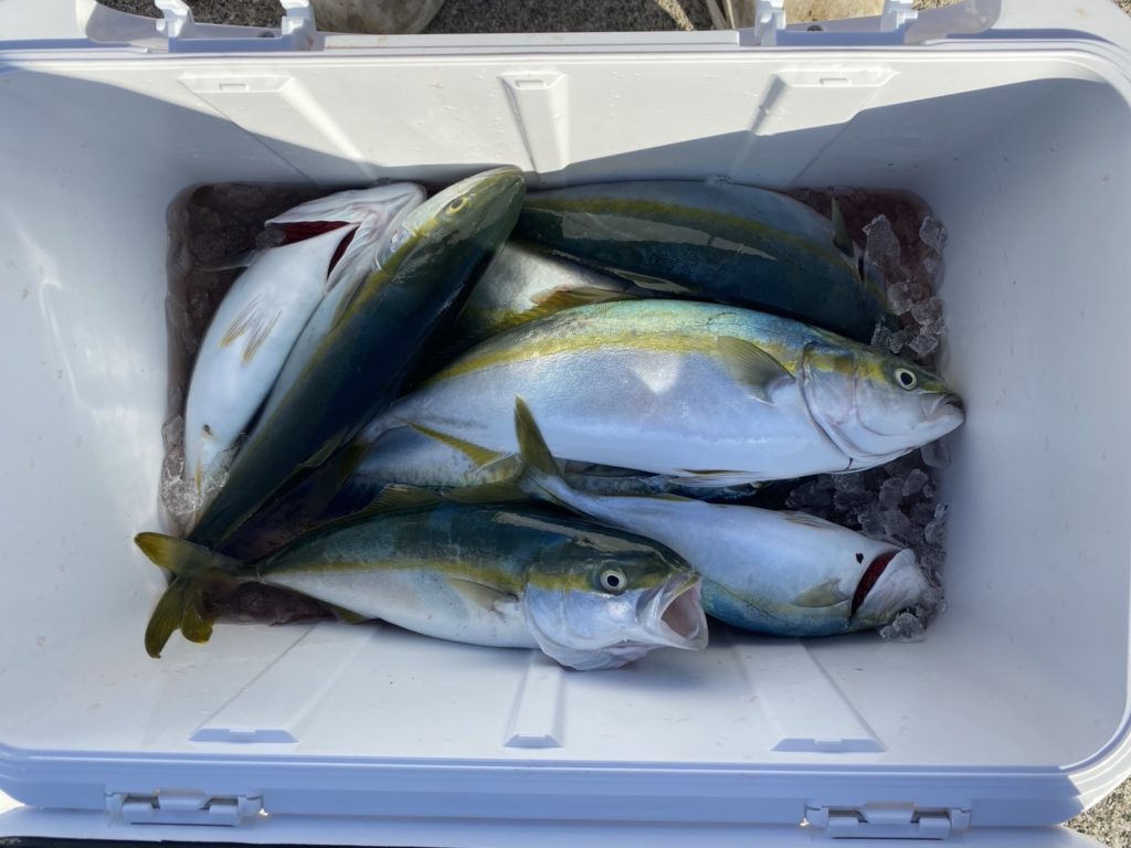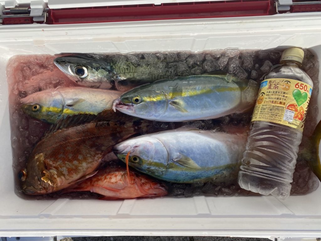 朝一からウネリ強く、予定より遅らせての出港。船釣りは初心者🔰の方3名ジギングのため、ほとんど青物だけでしたが、途中アマダイやキジハタなども釣れて賑わいました。