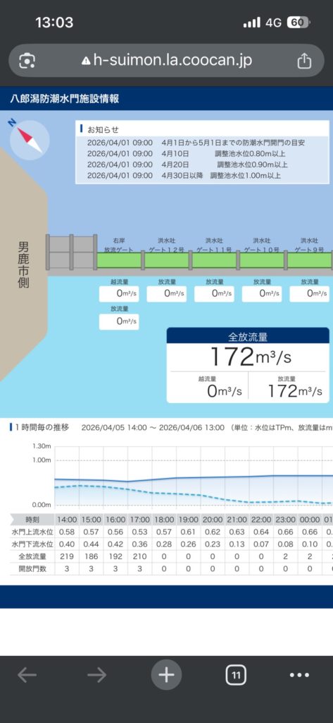 本日は流木やゴミが多く、濁りも強い…。もしやと思って調べてみたら案の定、昨日も今日も八郎潟の水門ドバドバと開放中でした(;´∀`)