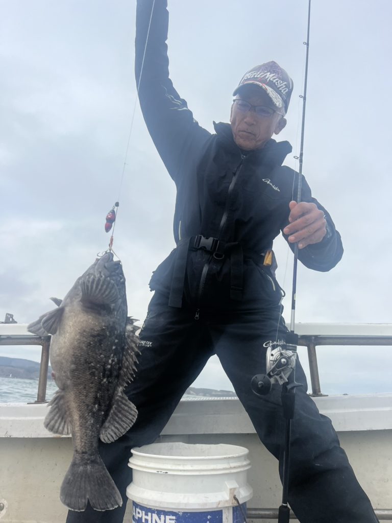 直後にお客様にもヒットし、こちらは良型クロソイ!掛かってすぐ根に潜ろうとしたとの事だったので、もしかしたら直前に店長が引いたのもクロソイだったかもしれませんね(‘ω’)