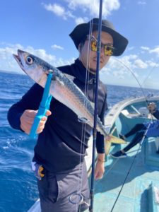 珍しくマグロが釣れましたが、残念ながら採捕制限に引っかかるサイズだった為、リリースして頂きました(>_<)