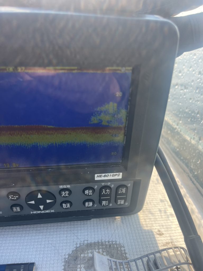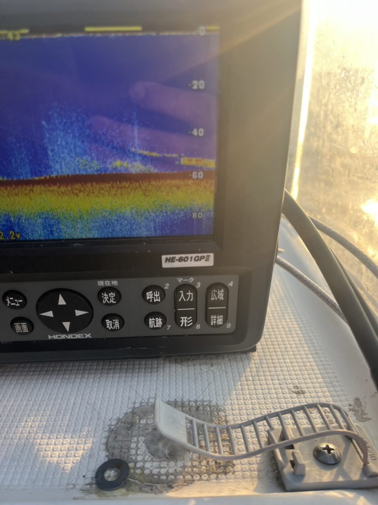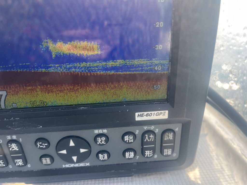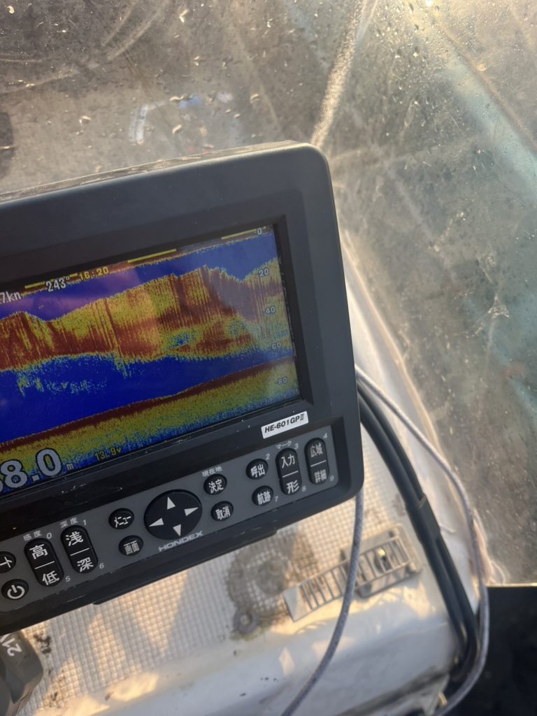 ちなみにさっきまで永幸と同じポイント流していたのですが、この辺りで永幸含めほとんどの船はどんどん深場へ移動していますね・・・。浅場根回り駄目だったのだろうかとちょっと不安になりました(;´∀`)