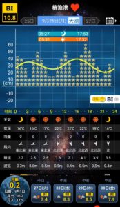 BIはほぼ当てになりませんでした。ぴったし干潮となって放送を掛けるも、関係無くその時間にバタバタ釣れたりもしたので・・・。