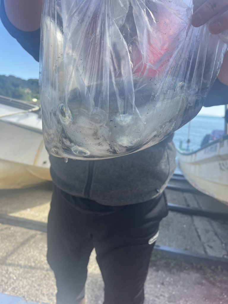 12:30 第十八つばき丸(以下 十)は、JOYの30分前には出船(潜り漁に行かず午後十八出ている理由については上記ご参照下さい)。14時半~15時までは渡船対応があるのでその時間だけ一旦帰港になります。
