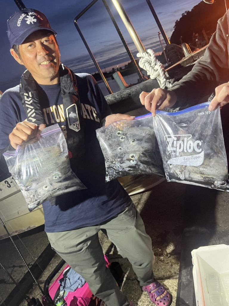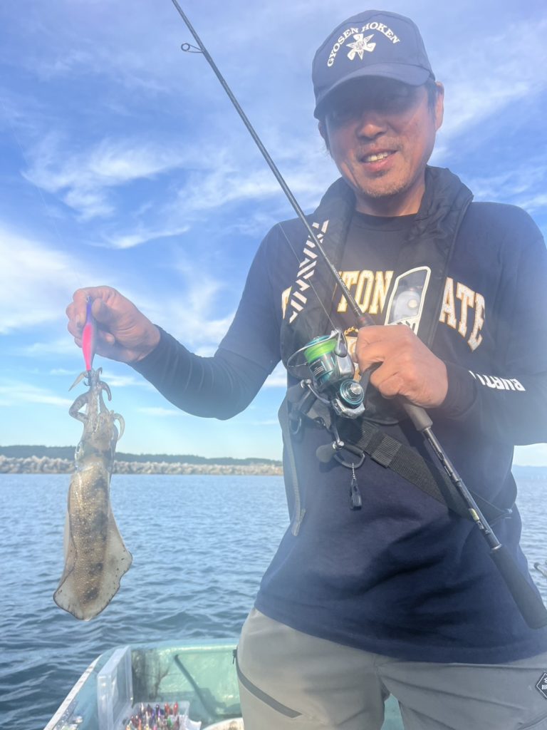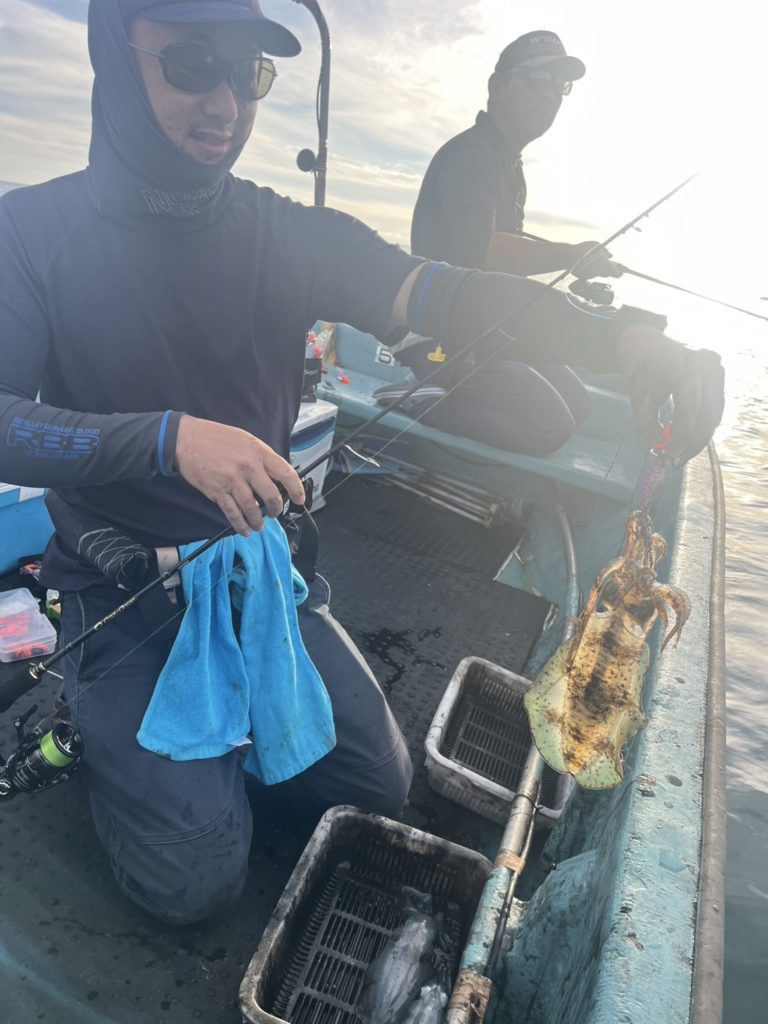 舳先の方はティップラン初めてですが、代表者様にサッと教えて貰ってすんなり理解した様子で、シャクるのに苦労しながらも合わせの精度が鋭く、熟練の皆様に負けず劣らず見事な釣行でした!やはり一番大事なのは「アタリが分かるかどうか」にかかっております(*´ω`*)