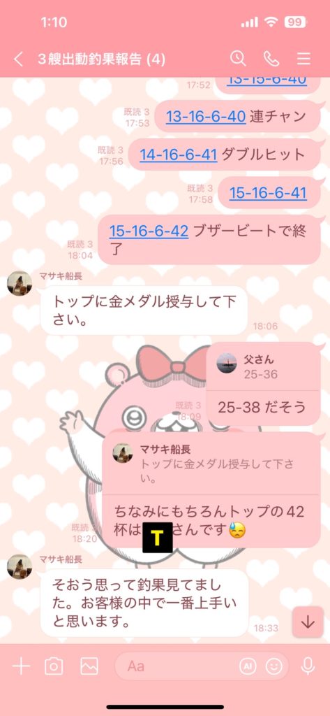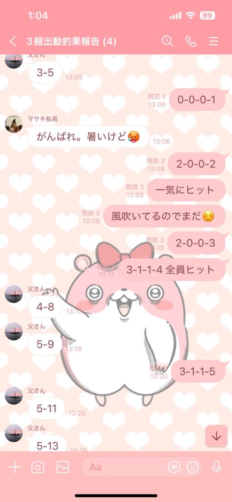 舳先の2名様グループは、いかにして「互いの釣果を減らすか」で勝負しており、もはや協力じゃなくて対戦ゲームになってましたね。仲良しでよいことですね!( *´艸`)