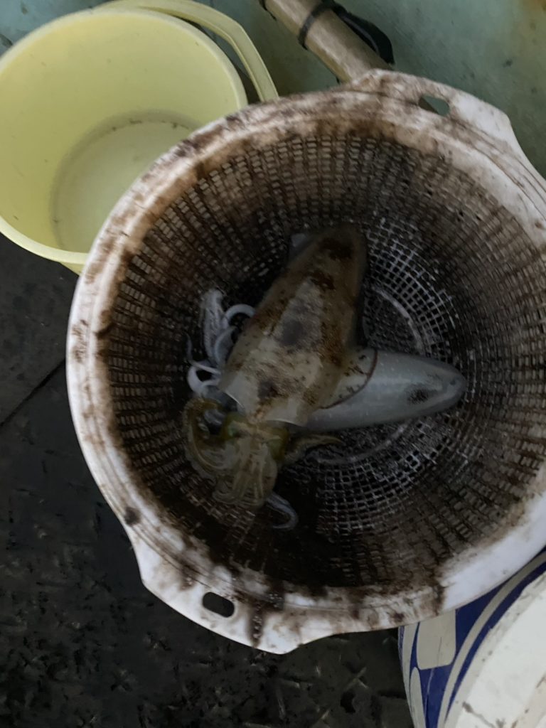 07:53 J 1-1 イカ掛かって巻いてたら途中ロープゴミ浮遊してるのに引っかかったものの無事外れました。イカもまだ付いてたの奇跡だ・・・( ゚Д゚)