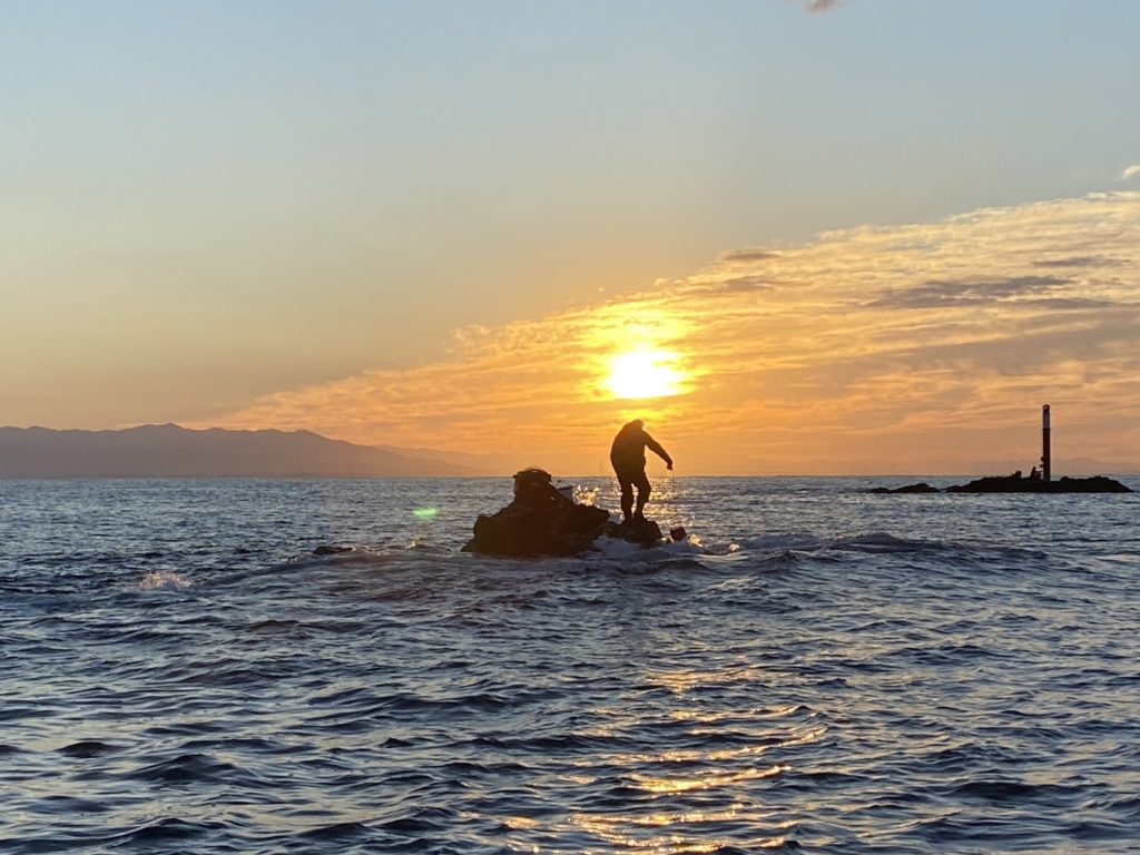 ・子島‥釣果なし。シケによりわずか1時間半ほどでとどえぐりに変更。