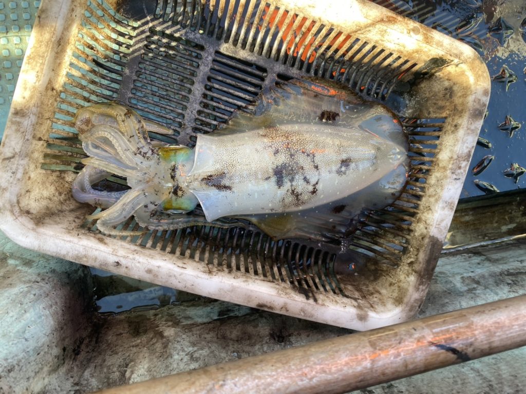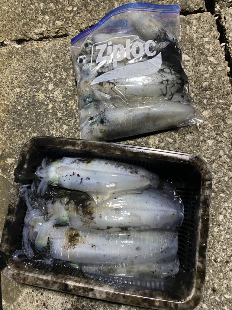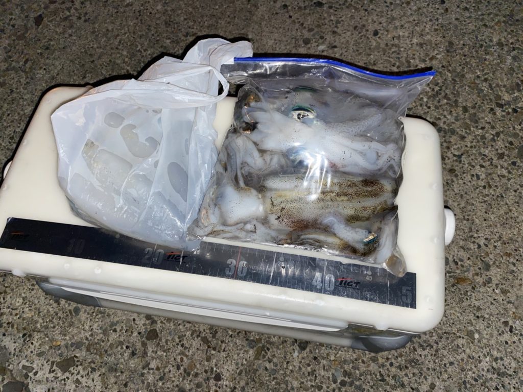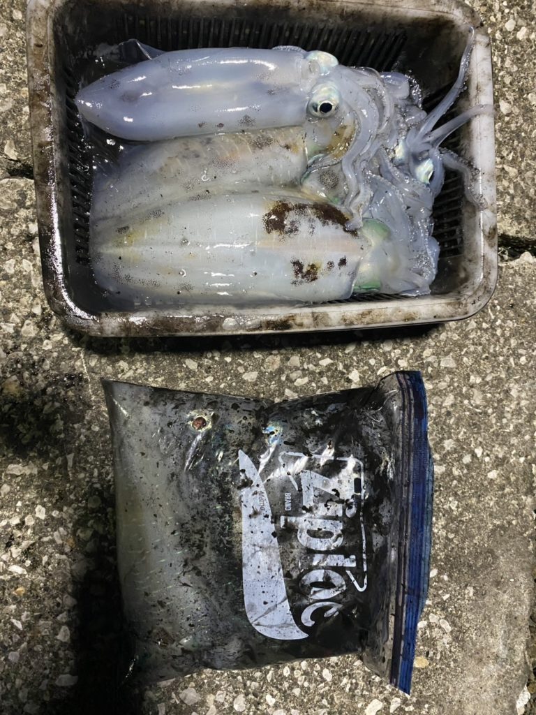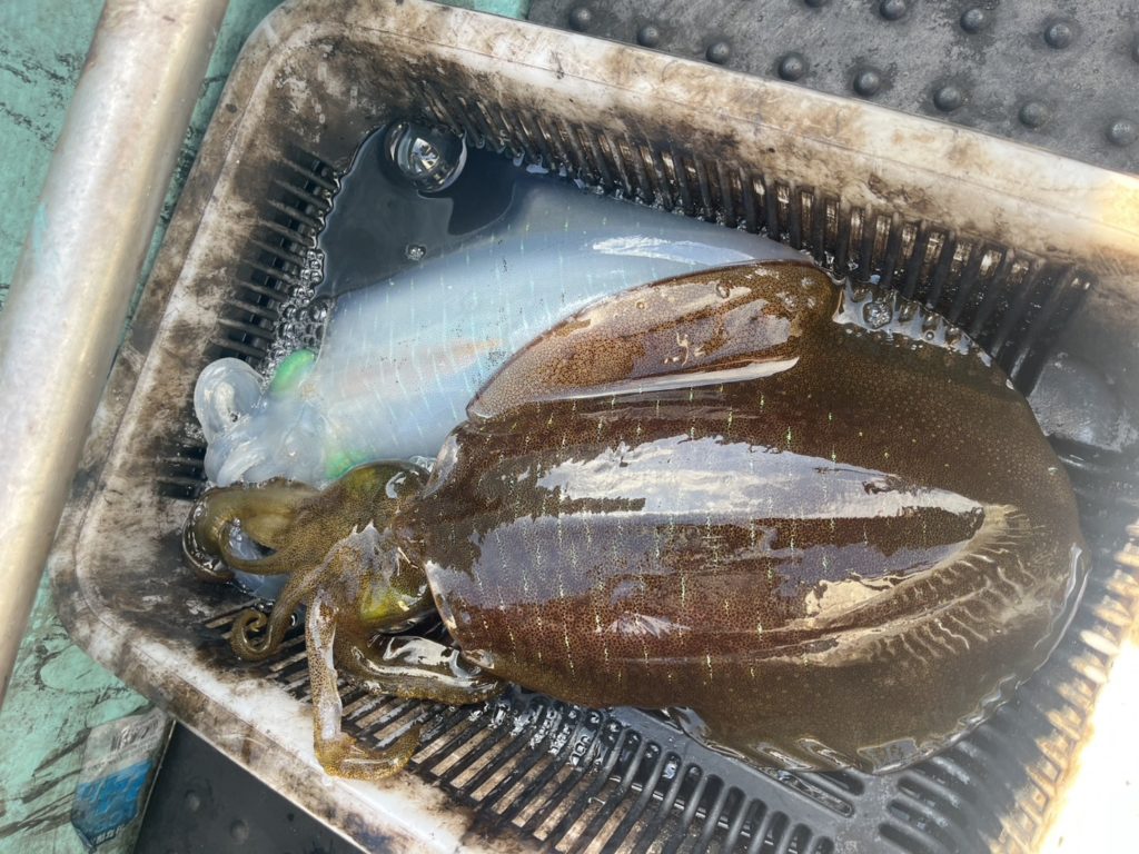 11:26 J 13-10-7-3 リールトラブル発生。手巻きで回収してたらイカ釣れてました(;´∀`) そしてつ抜け達成!