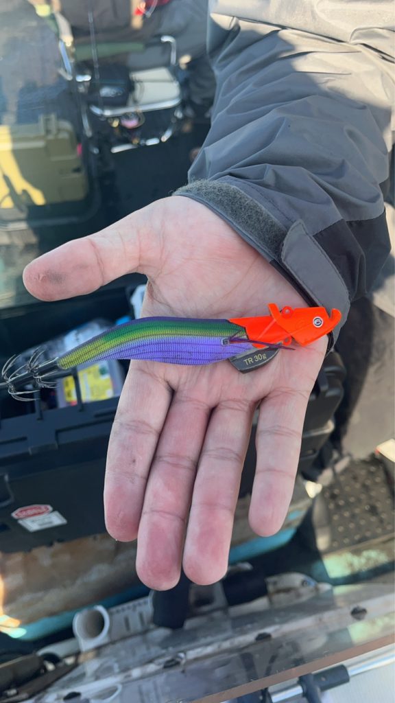 08:25 J JOYの方々のエギカラーは、ダートがオレンジヘッドのパープルボーダーグリーン。1人はエギ王TRのコハダフラッシュ。最近コハダカラー地味に強いです。