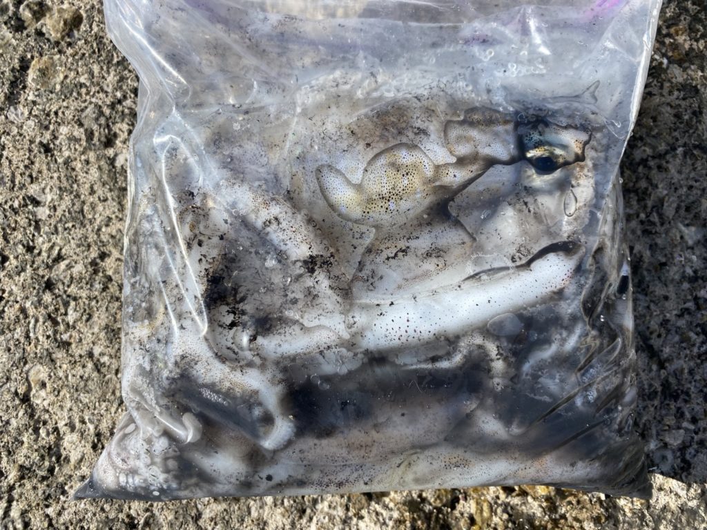 14:33 十 釣れたけど・・・、「小さいなぁ~」って言ってたら、🦑「じゃあ帰る!」とばかりに脱走された!!あの子将来有望だわぁ・・・(´・ω・`)