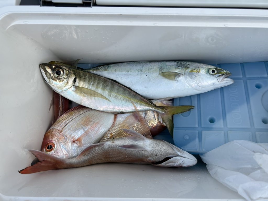 それからはアタリも遠のき時間も迫って来た為、最後には「せっかくなので全体的に数も釣って欲しい」&「ジグで青物狙いの1名様にも楽しんで欲しい」と二つの目的を備えて浅場へ٩( ᐛ )و