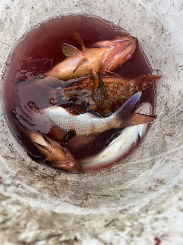 浅場では、甘鯛組の3名様はジグサビキ使用で、根魚中心に多種目コツコツと捕獲☺️