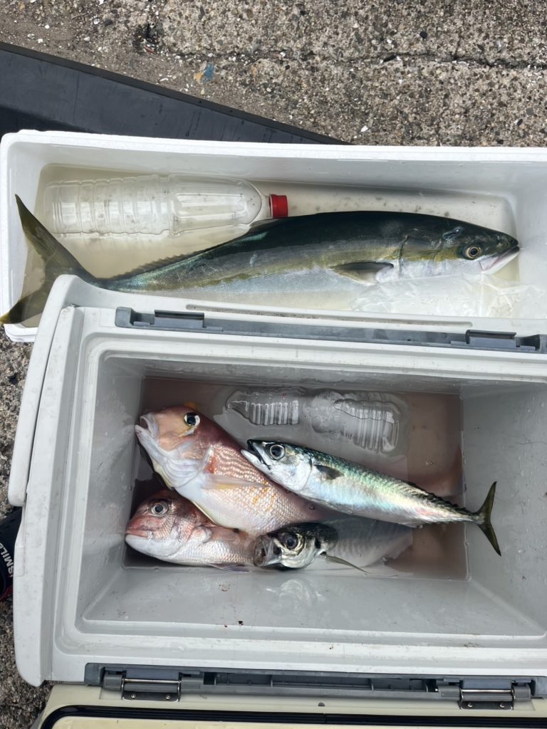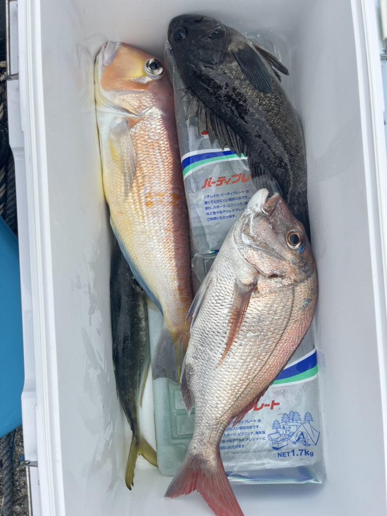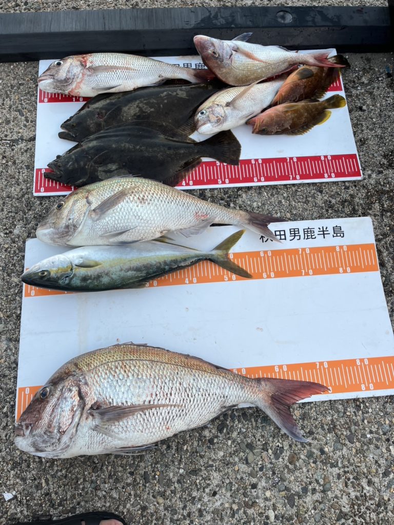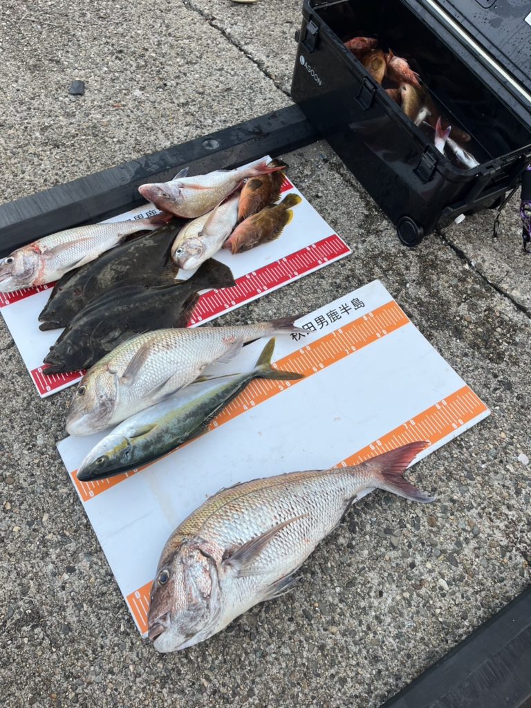 何か対策でも練って来たのでしょうか。マダイ70オーバー二枚に、ヒラメ、青物まで・・・。その他五目的にも十分に数揃えてクーラーパンパンです(;´∀`)