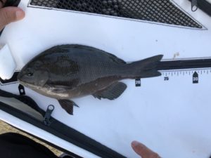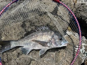 サイズはほとんどが小さ目だったのですが、その中でもツートップ(30cm、25cm)のメジナを、写真撮るようにわざわざ持ってきて下さいました。ありがとうございます。(ページ下部にリリースの動画有)※動画再生時は音量にご注意下さい。