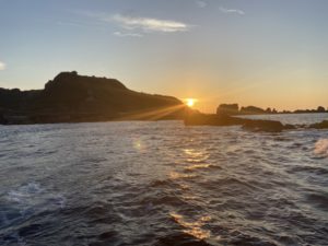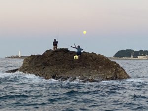 段々と予報が変わり東向きになってきたので、店長に相談の上、7時頃に今からでも宜しければという事で再度お電話してみました。初の沖磯なので利用してみたいとの事で、遅ればせながらご案内する事ができました。