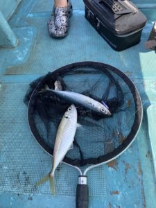 釣果:大アジ大漁、サバ大漁、マダイ、ウッカリカサゴ、レンコダイ。
