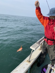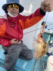釣果:アジ、テリ、ホッケ、ウッカリカサゴ、クロソイ、巨大キジハタ(45cm前後と推測)、巨大マダイ(65cm前後と推測)。本日も沖釣りでは様々な魚が釣れました!